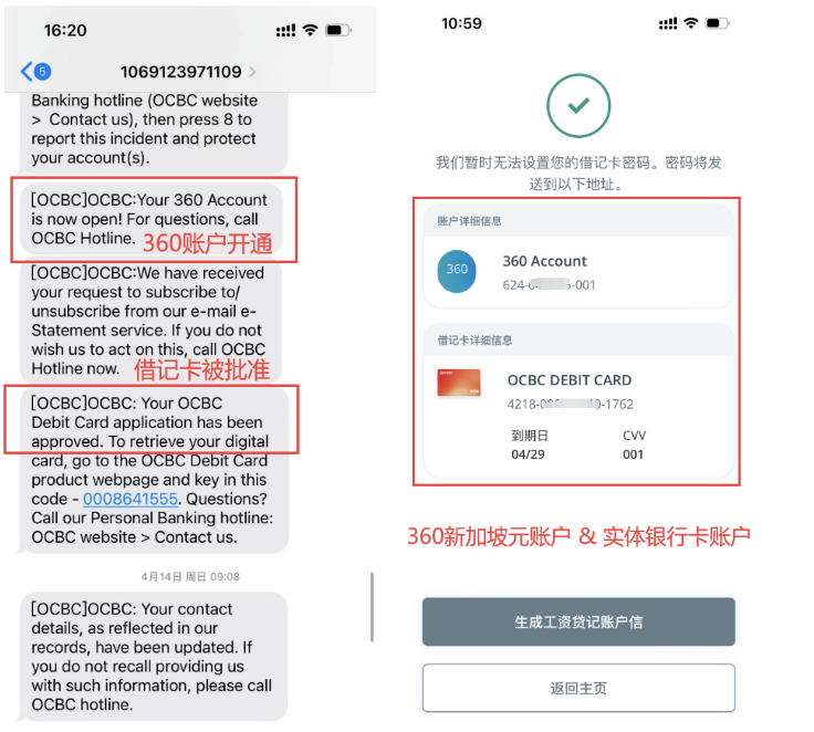 新加坡OCBC华侨银行账户 - 360账户开通短信